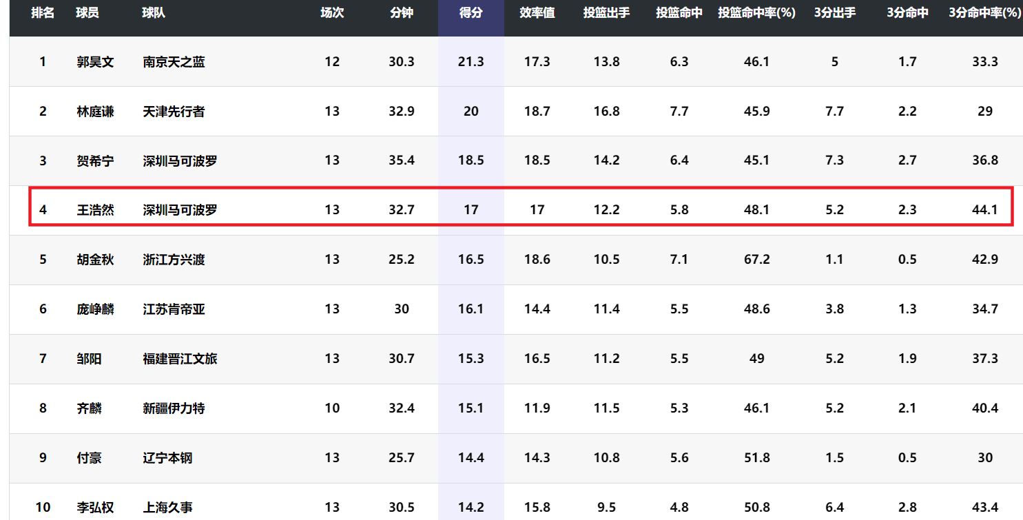 王浩然俨然成为非常稳定的三分射手。在本赛季的本土球员得分榜上,王浩然排名第四,仅落后郭昊文、林庭谦和贺希宁。王浩然的得分甚至比胡金秋、周琦、曾凡博等国家队的名将还高。和他们相比,王浩然还有一手产量颇高的出色的三分球。很显然,王浩然非常值得一个全明星席位,也非常值得进入中国男篮集训,总比经常进入集训名单的杜润旺、刘礼嘉出色。